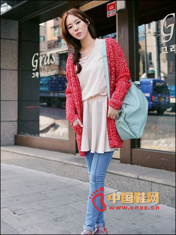 单色毛衣外套,鲜艳靓丽的色彩,略带花呢的质感,甜美中散发着小女人的知性气息,柔软的面料,宽松的线条,体现出非常轻松而甜美的休闲风范,V字领的搭配,给人以非常性感的气息。