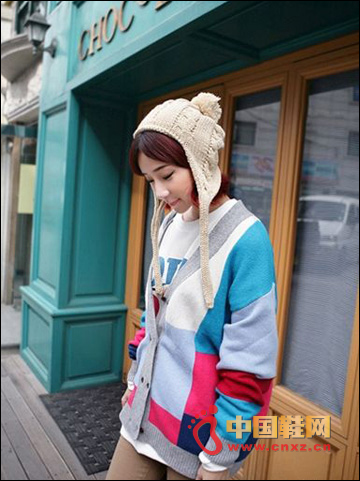 毛衣外套,鲜艳甜美的色彩拼接,非常的精致而可爱,厚实的面料,穿着起来非常的保暖,简约而随意的V字领,轻易间显露出非常迷人的性感魅力,糖果色彩,营造出小女人的可爱氛围。
