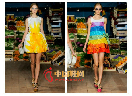 【】对于坚守实穿、优雅路线的米兰时装界而言,有风格戏谑的莫斯奇诺 (Moschino) 的存在实在是个异数,它以惯用戏谑表现方式而着名。是莫斯奇诺 (Moschino) 旗下副线之一。Moschino Cheap And Chic 2012春夏系列秀场造型在米兰时装周上发布。它主攻的是少女市场,在2012春夏系列的设计中充满了春天氛围的裙子,甜美的蔬果元素加上亮丽的色彩、青春的造型,吸引了不少少女的眼球。拥有这样一件裙子,可以大大提升你的甜美度。