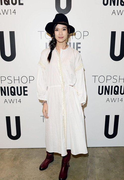 中国鞋网2月18日讯,超模Kate Moss身穿军绿色连体裤搭高阿跟鞋现身Topshop Unique秀场,《金刚狼2》女主冈本多绪白裙飘飘出现在镜头,日系装扮显露出清纯可爱,女魔头Anna Wintour等名人也出现在秀场头排。(合作媒体:)