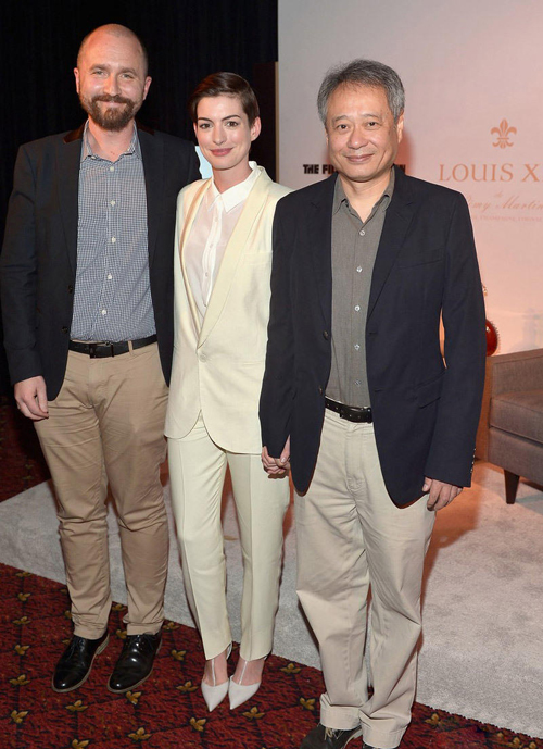 安妮·海瑟薇穿西装搭高跟鞋帅气亮相 与李安熊抱