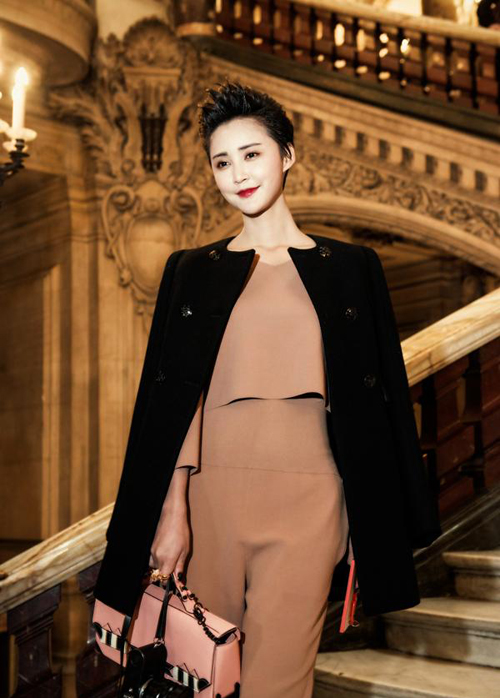 张歆艺巴黎首秀 裸色裤装搭高跟鞋显酷帅