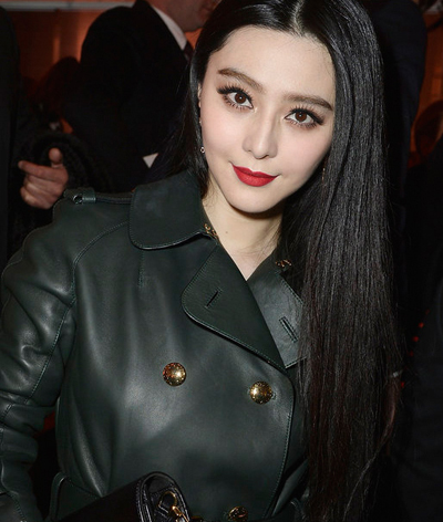 范冰冰着皮风衣搭高跟鞋亮相时装周LV秀场