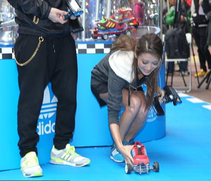 谢婷婷短裙搭运动鞋现身品牌活动 不知走光
