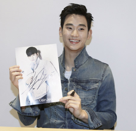 中国鞋网3月10日讯,演员金秀贤出席了在首尔其代言牛仔品牌粉丝签名会活动,帅气的外貌和亲切笑容牢牢抓住了女粉丝们的心。 (合作媒体:)