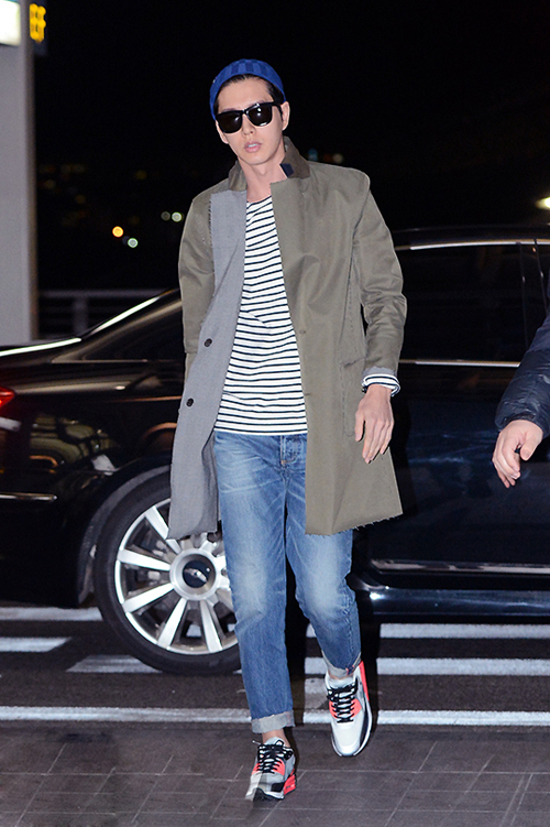 中国鞋网3月11日讯, 因《星星》富二代李辉京一角人气大噪的演员朴海镇穿着一身休闲鞋服现身机场,为录制湖南卫视《快乐大本营》3月10日前往中国。(合作媒体:)