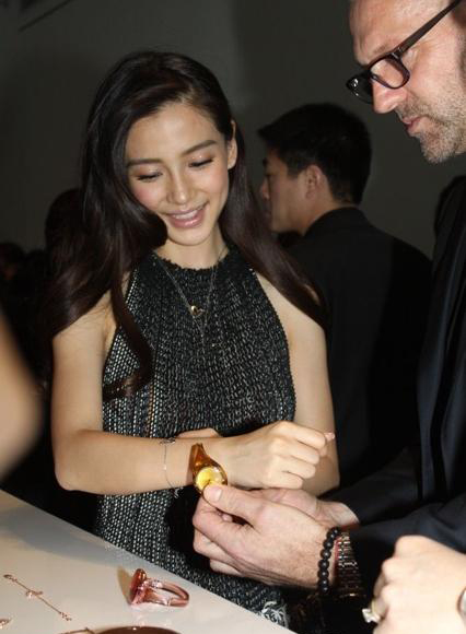Angelababy短裙搭高跟鞋现身 显光彩夺目
