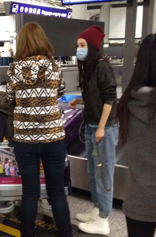 中国鞋网3月13日讯,近日,杨幂身穿黑色上衣、破洞牛仔裤和运动鞋现身上海机场。当天,杨幂头戴红色毛线帽,口罩遮面,打扮萌态轻便。在等候过程中,坐在行李车中小心护胎。(合作媒体:)