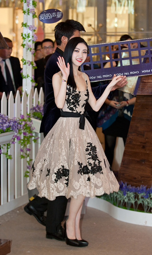 景甜为品牌站台 性感洋装搭高跟鞋甜美现身