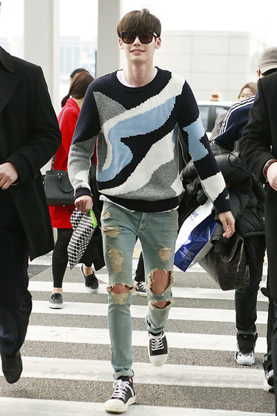 中国鞋网3月20日讯,演员李钟硕为出席某时尚品牌开业活动从仁川机场出发,前往中国。李钟硕穿着印染的针织衫搭破洞牛仔裤和休闲鞋现身,潮范十足。(合作媒体:)