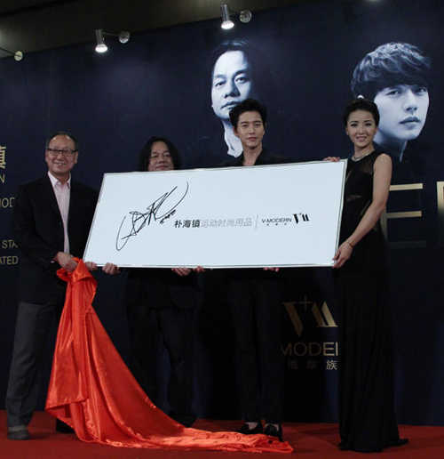 中国鞋网3月26日讯,3月25日,凭借《来自星星的你》火遍整个华语圈的韩国演员朴海镇着帅气鞋服惊艳亮相北京国际时装周,与中国设计泰斗张肇达一起共同创立服装品牌。内地演员黄曼作为唯一嘉宾受邀出席,自曝是“星星狂迷”的黄曼当天也获得了来自男神朴海镇的热烈拥抱。