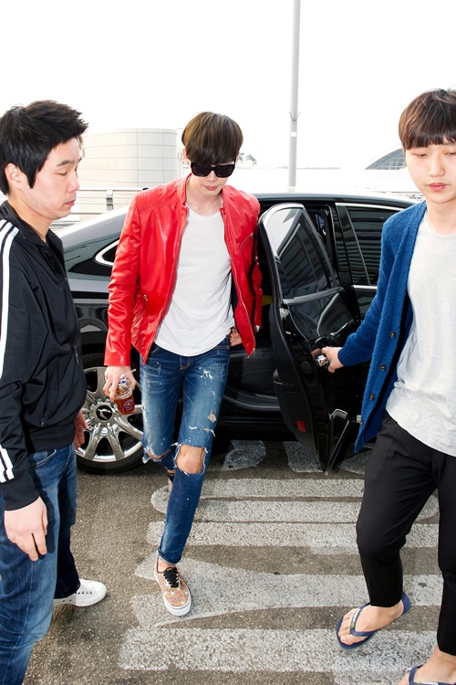 李钟硕现身机场 红色皮衣搭仔裤休闲鞋帅气抢眼