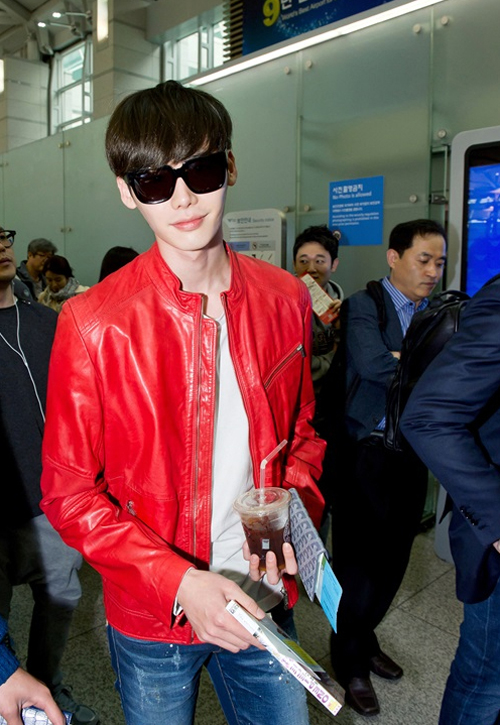 中国鞋网3月27日讯,韩星李钟硕为出席某品牌宣传活动,从韩国仁川机场出发前往香港。李钟硕穿着红色皮衣搭破洞牛仔裤和休闲鞋的搭配相当帅气抢眼。(合作媒体:)