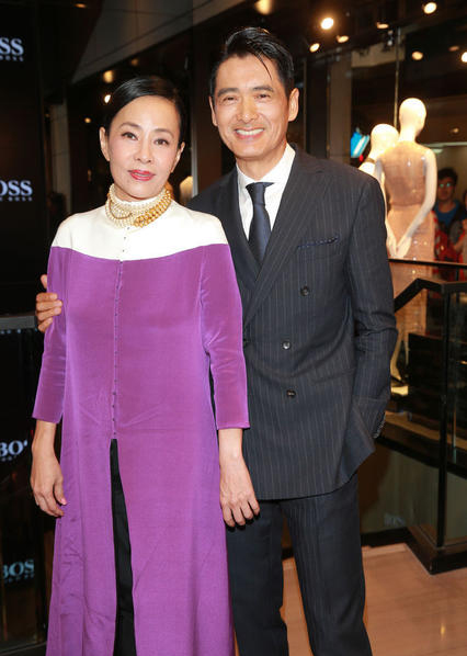 周润发着西装革履帅气现身 偕发嫂秀恩爱