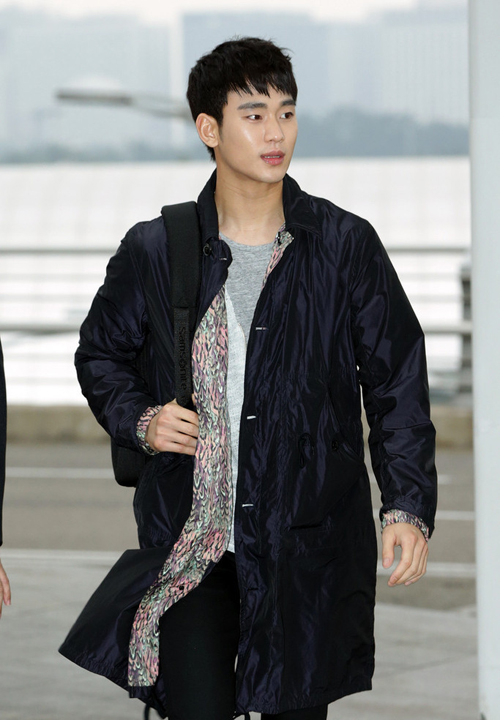 金秀贤着休闲鞋服帅气亮相 大衣双肩包运动时尚