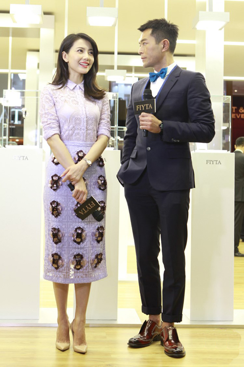 中国鞋网4月2日讯,高圆圆一袭雪青色蕾丝裙装搭高跟鞋亮相瑞士巴塞尔国际钟表展,与古天乐一同为其代言的某手表品牌造势。高圆圆鲜艳红唇搭配淑女范儿十足的蕾丝裙装极其抓人眼球,高贵优雅的同时又不失摩登性感。