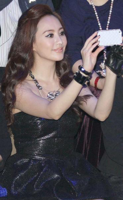 关颖低胸裙搭高跟鞋看秀 裙摆过短尴尬露底