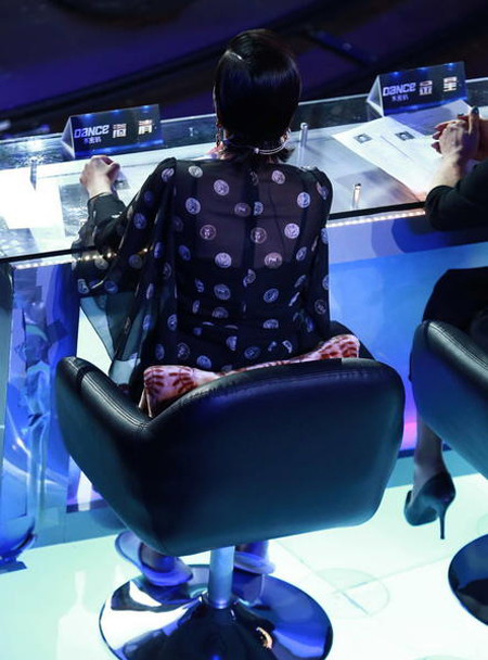 中国鞋网4月8日讯,即将开播的《中国好舞蹈》节目近日正在上海紧张录制,接连三天通宵“作战”,高强度的节奏让三位评委郭富城、海清、金星有点“吃不消”。好在海清有备而来,录影现场自带拖鞋和靠枕,十分惬意。身穿透视装的她隐现玉背,充满性感诱惑。见到近乎全裸的男舞者登台时,用纸遮面爆笑,一脸害羞神情。