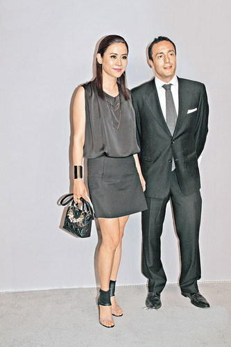 宣萱穿露背裙搭高跟鞋现身 与外籍人士贴头聊天