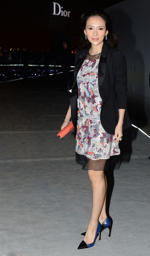 中国鞋网4月10日讯,章子怡受品牌邀请出席春夏高级定制系列大秀,身穿连身纱裙配黑色西装外套,踩着高跟鞋压轴亮相,优雅精炼,气场十足。(合作媒体:)
