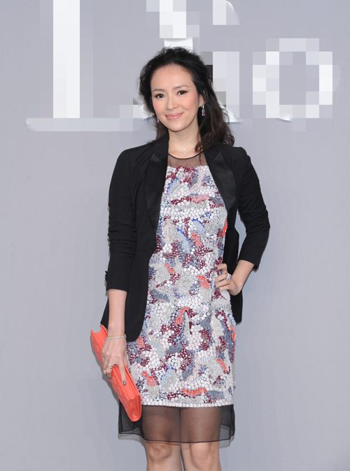 章子怡出席时尚活动 印花裙搭高跟鞋优雅精炼