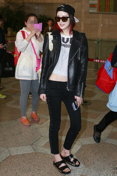 Irene红发造型亮相机场 赴上海参加秋冬鞋展