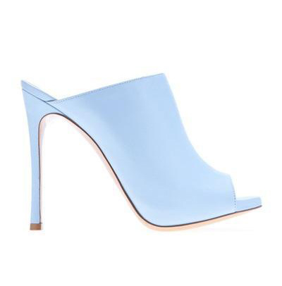 Gianvito Rossi 古典风格的穆勒鞋,采用奶肉般饱满的天蓝色,带给人无限清新之感。售价约5000人民币。