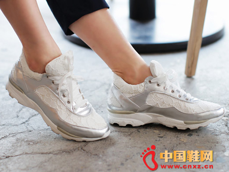 银色调的运动鞋,鞋面蕾丝拼接,超有人气的款式,很舒服的鞋型,上脚感很棒。(合作媒体: )