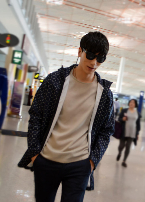 张亮着帅气鞋服亮相机场 赴韩进组拍摄新剧