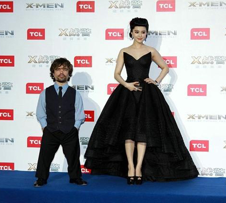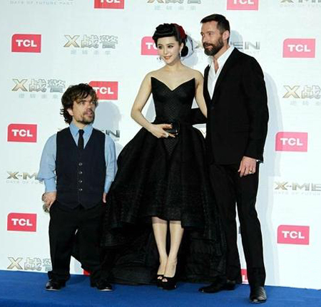 中国鞋网5月14日讯,好莱坞3D大片《X战警:逆转未来》举行亚洲首次宣传活动,当天主演「金刚狼」休.杰克曼和「小恶魔」彼特.丁拉基、范冰冰穿着一袭低胸裙搭高跟鞋现身,为影片宣传助阵,范冰冰现场透露,影片中加了很多的中国元素,而她本人是影片中唯一的亚洲人。