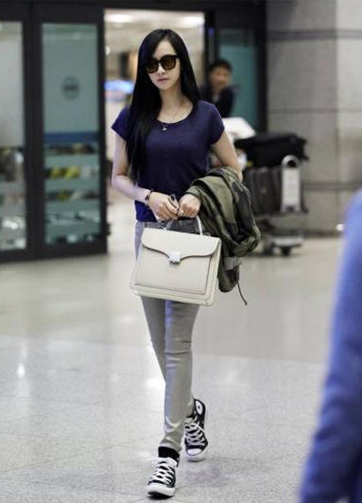 中国鞋网5月15日讯,韩国人气组合f(x)队长Victoria宋茜惊现韩国仁川机场,引来粉丝热烈追捧。穿着一身休闲鞋服的造型,时尚甜美,并携带LOUIS QUATORZE本季主打ALSACE系列包款,优雅形象让粉丝尖叫不已。(合作媒体: )