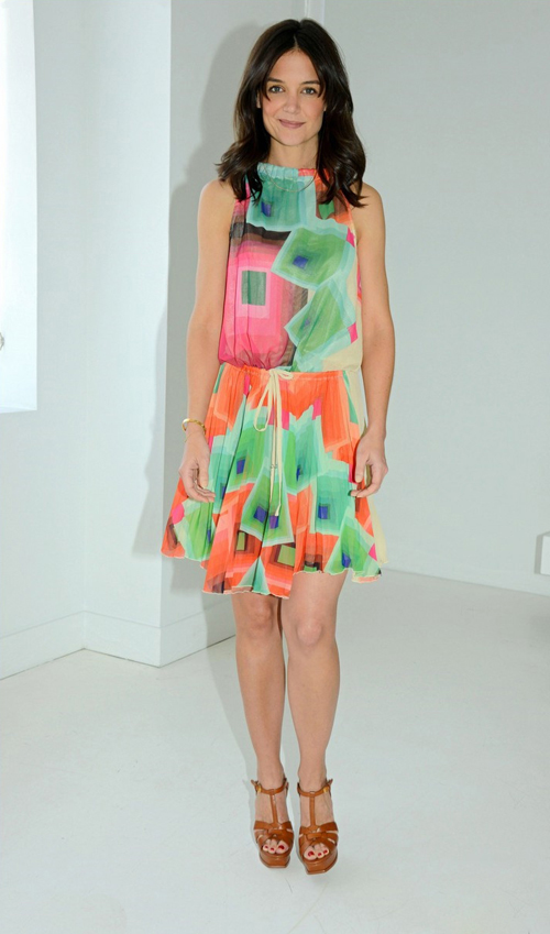 中国鞋网5月22日讯,美国纽约,前汤嫂凯蒂-赫尔姆斯身着花裙现身扮嫩,脚踩高跟鞋大秀美腿。(合作媒体: )