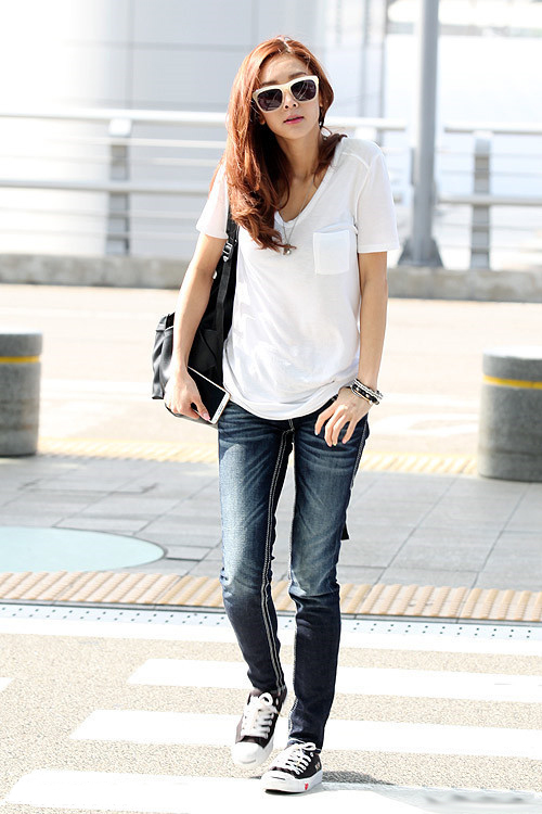G.NA亮相机场 着休闲鞋服展清纯魅力