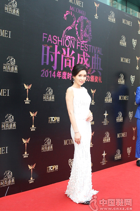 中国鞋网6月16日讯,着名影星杨恭如出席由深圳卫视和时尚TOP杂志联合主办的2014时尚盛典年度影响力人物颁奖礼,当晚红毯星光熠熠,杨恭如以一袭白色镶钻长裙搭高跟鞋闪亮登场。