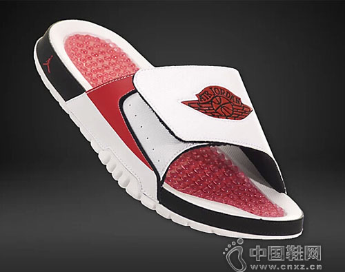 这款Air Jordan Hydro II的拖鞋相对是较经典的一款AJ正代拖鞋了,可能是因为这是唯独一款保留了飞人翅膀的标志的拖鞋吧。加厚的鞋面选择可调式魔术贴扣带设计,加上满布颗粒的鞋垫,为双脚带来了运动鞋般的脚感。
