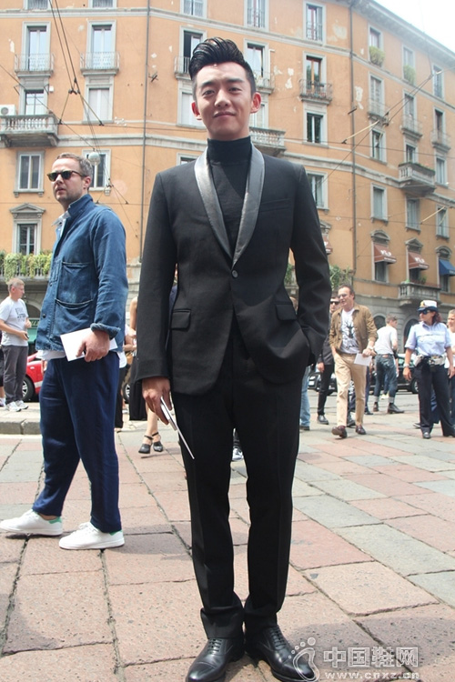 中国鞋网6月24日讯,2015米兰春夏男装周激战正酣,郑恺以全身黑、暗紫色西装以及印花衬衫三套不同风格的鞋服组航班出现在秀场,一天狂换三套look,堪称“时尚劳模”。 (合作媒体: )
