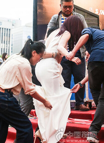Selina穿高跟鞋走红毯险摔倒 获工作人员搀扶