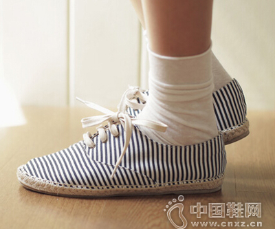 自然风帆布休闲鞋,特别适合夏天的条纹海军风配色,上面还有可爱的船锚印花,鞋底是麦秸编织的处理,自然透气。