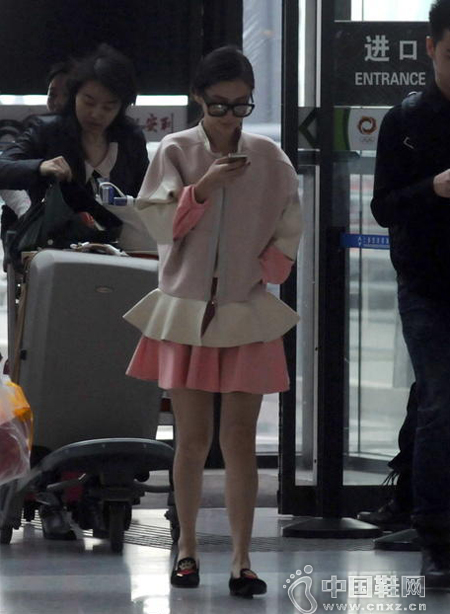 中国鞋网7月7日讯,上海,近日angelababy出现在上海虹桥机场,当天angelababy身穿粉色超短裙出现,脚踩平底鞋的baby走在人群中身材略显普通毫不起眼,一路上玩着手机的angelababy都没人能将其认出。 (合作媒体: )