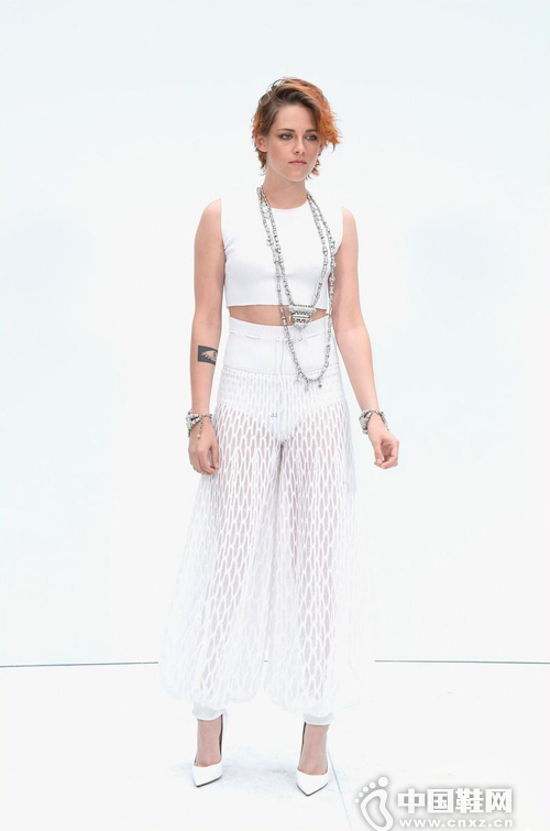 克里斯汀以一身白色鞋服造型现身巴黎秀场