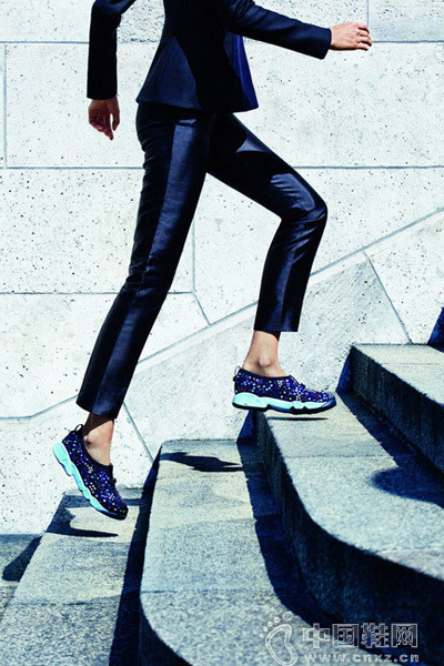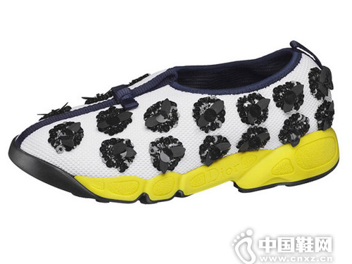 中国鞋网7月11日讯,已经连续在好几季的时装秀上,可以看见无论是模特儿或是时尚潮人,人人脚底踩着的不是高跟鞋,而是一双Sneakers,可见运动风潮仍然正在持续燃烧。如今Dior也加入这场战局,于2014秋冬首次推出运动鞋款——The DIOR Fusion Sneakers.这双由Raf Simons亲自设计的运动鞋,灵感主要来自DIOR 2014春夏高级订製服系列,在橡胶鞋底中加入了高级订製服的金属亮片手工刺绣工艺,是一款时髦与精緻兼具的Slip-On鞋款,散发出优雅与当代气息,而这也是DIOR首度尝试的全新风格。