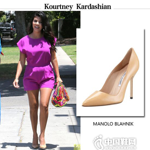 姐姐金-卡戴珊(Kim Kardashian)爱穿裸色,妹妹也不示弱。一身亮紫色连身裤十分抢眼,搭配一双裸色妩媚迷人又让足尖散发出裸色的性感魅力!