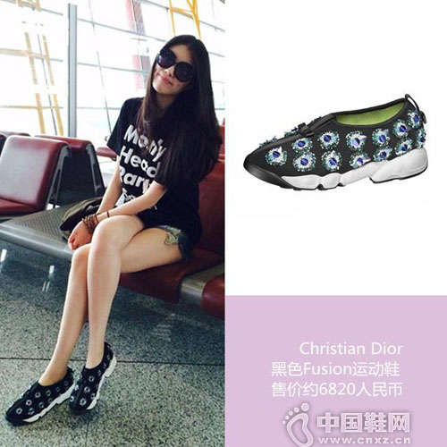 名模何穗的这双和徐濠萦的一样,不过她用来搭配休闲风格。黑超、黑色字母T恤、牛仔热裤,再加上Dior最新款运动鞋、超模身材,想不惹眼都难!