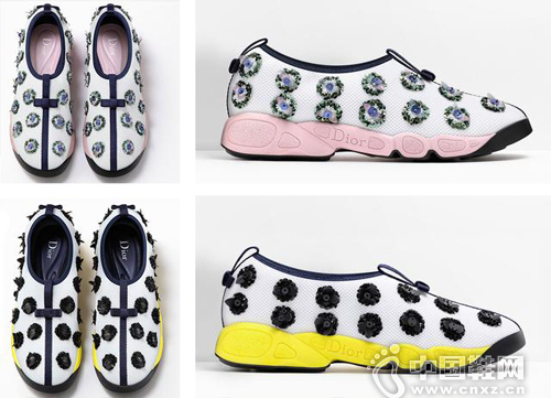 中国鞋网7月29日讯,时尚圈跨界运动风的热潮真是无法阻挡,自Chanel把运动风带入鼎盛时期后,Dior也不甘示弱,设计师Raf Simons亲自参与设计了首款Fusion Sneakers运动鞋系列。鞋款设计中融入了Christian Dior先生钟爱的花朵元素,纯白、浅粉、天蓝、柠檬黄的橡胶鞋底,与精美的亮片、刺绣相结合,兼具时尚与优雅气息。作为Dior即将大热的一款运动鞋,你知道它吗?