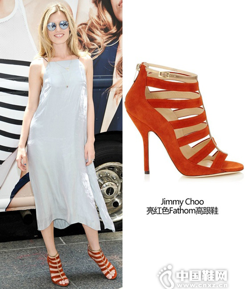乔治亚的这款造型完全就是为了Jimmy Choo这款火辣的踝靴而生,一袭简单灰色吊带裙配这Fathom高跟鞋,依然掩盖不了性感味道。 (合作媒体: )