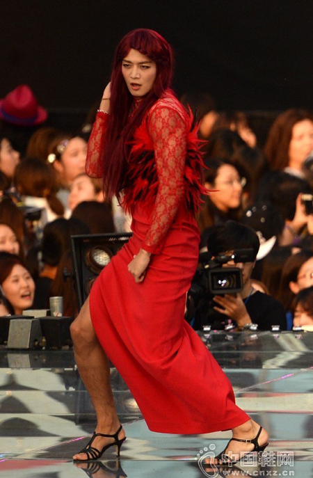 韩男星演唱会上穿女装 踩高跟鞋跳舞很灵活