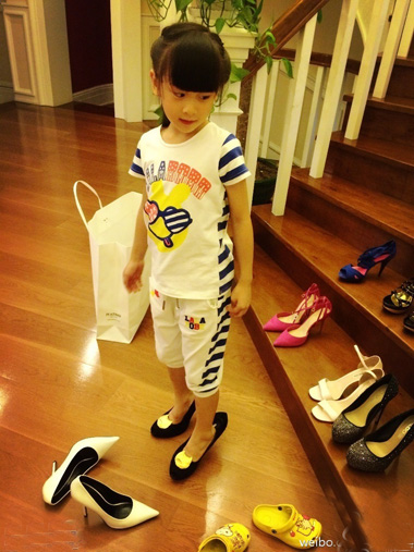 中国鞋网9月1日讯,30日晚叶一茜在微博晒出爱女森碟在家试穿妈妈高跟鞋的照片,称“女汉子也有公主心”。只见森碟穿着大大的高跟鞋对着镜头臭美搞怪,可爱十足。处女座的爸爸田亮不忘转发微博叮嘱“别穿高跟鞋在地板跑啊”,一家人尽显温馨。照片晒出后萌翻一众网友,纷纷留言为小妞点赞:“森碟本来就是公主”。