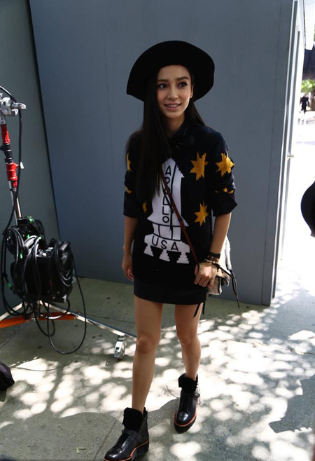 Angelababy亮相时装周 boyish鞋服搭配显俏皮