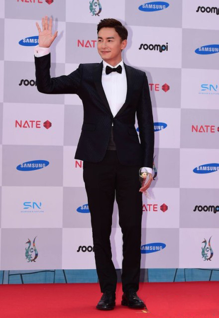 金秀贤胡歌西装革履亮相首尔电视节红毯