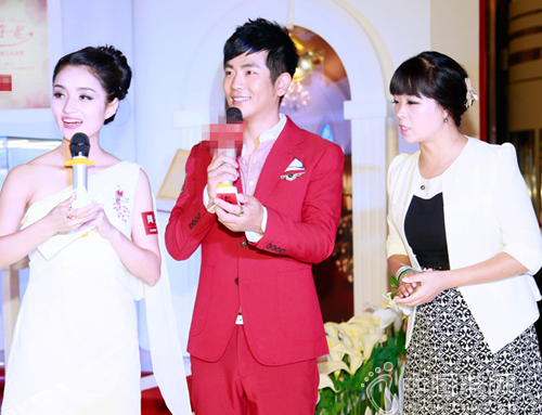 张晓龙红衣搭白鞋喜庆站台 与粉丝互动扮情侣